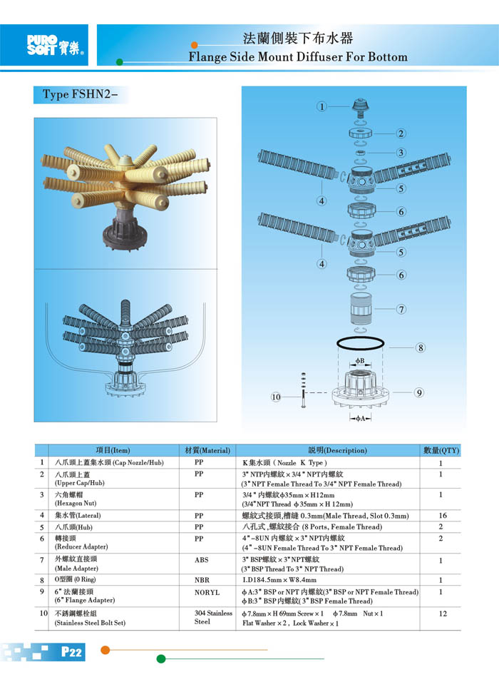 FSHN2法兰侧装下布水器